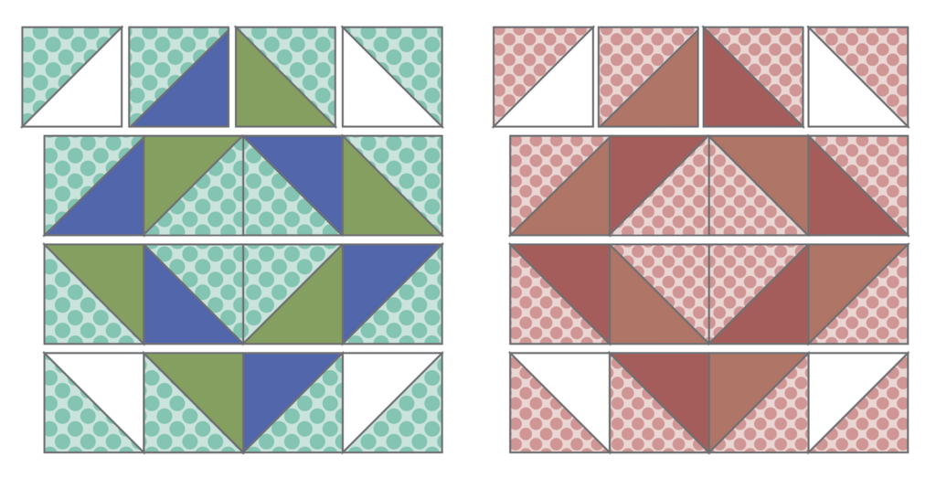 Make four of each block for your colorway. Refer to QAL Guide for fabrics used.